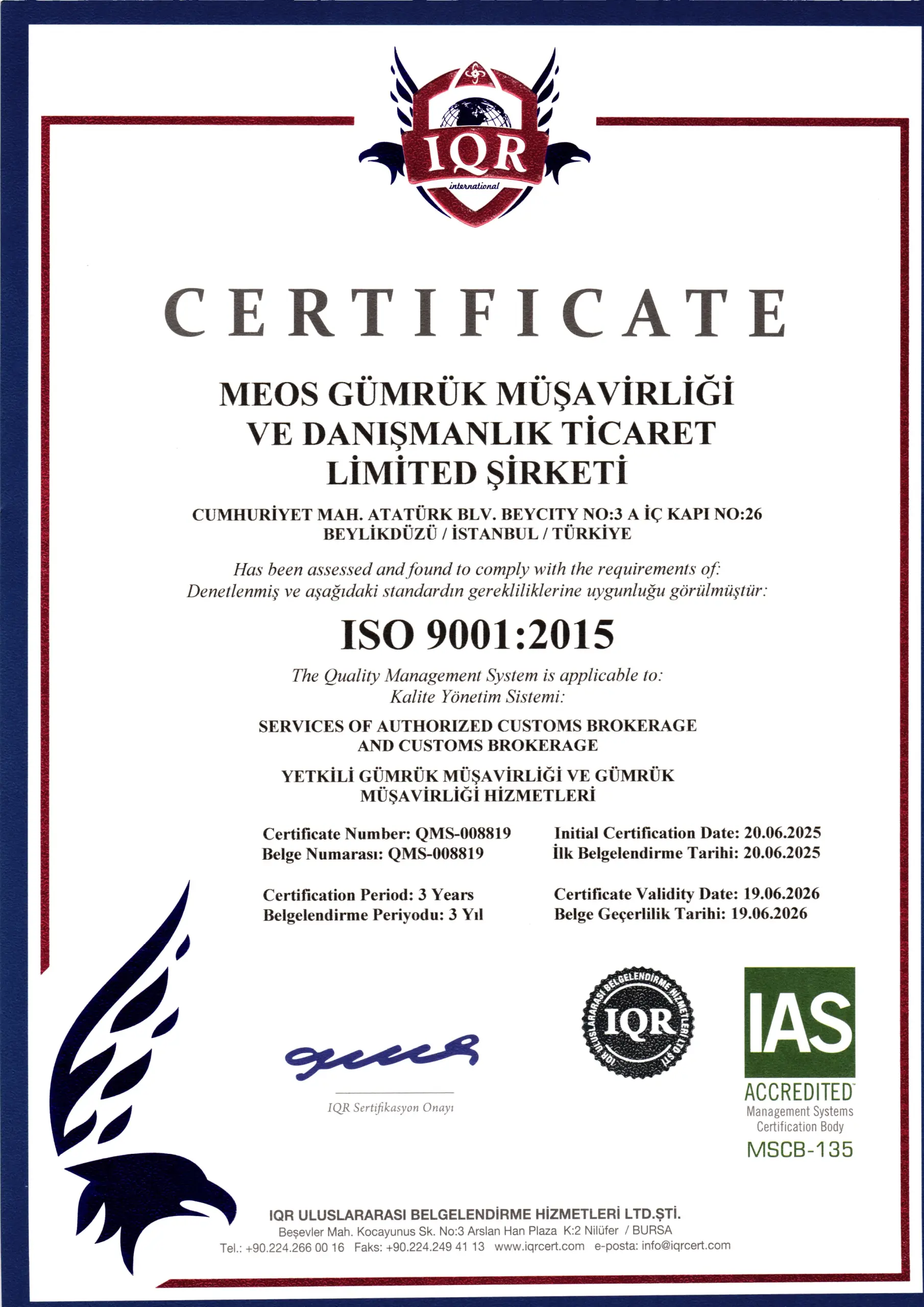 MEOS Gümrük Müşavirliği olarak misyonumuz; ulusal ve uluslararası mevzuat çerçevesinde, müşterilerimizin ithalat, ihracat, gümrükleme, lojistik, belgelendirme ve dış ticaret operasyonlarını eksiksiz, şeffaf, hızlı ve etkin bir şekilde yürütmektir.